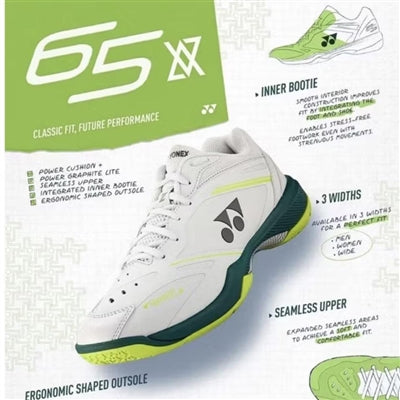 The 65 Z features a specially shaped wedge of POWER CUSHION+ in the heel designed specifically to absorb shock associated with the footwork of badminton. By improving shock absorption, our POWER CUSHION+ technology transforms impact into energy. A 28%* increase in shock absorption and a 62%** increase in repulsion when compared to the standard EVA materials.